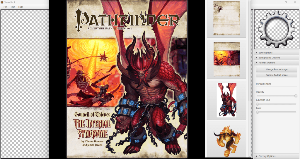 When you open a PDF in TokenTool (under File, or using Ctrl+O), the PDF will appear on in a new window, with two panes: The left-hand pane is the page of the PFD, and the right hand contains all of the images on that page. To get to a new page, scroll over the left-hand pane. No, there’s no jump option (that I could find), so some patience is a virtue here.