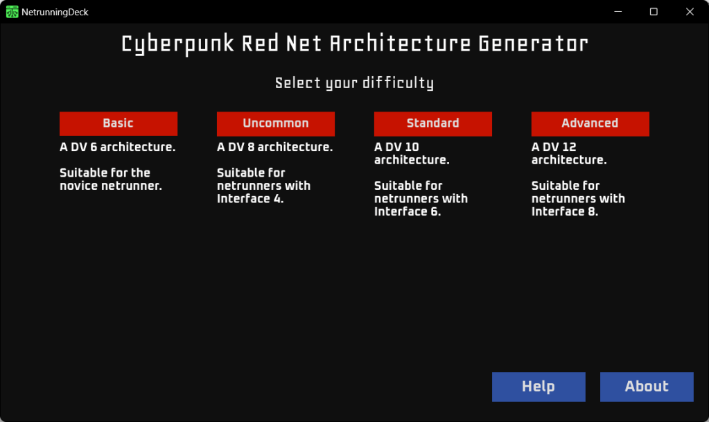 2. Select the difficulty. “Interface” is the Netrunner’s Role Ability. An arch that’s too hard for a netrunner could easily fry them, so be careful about tossing them into the deep end.